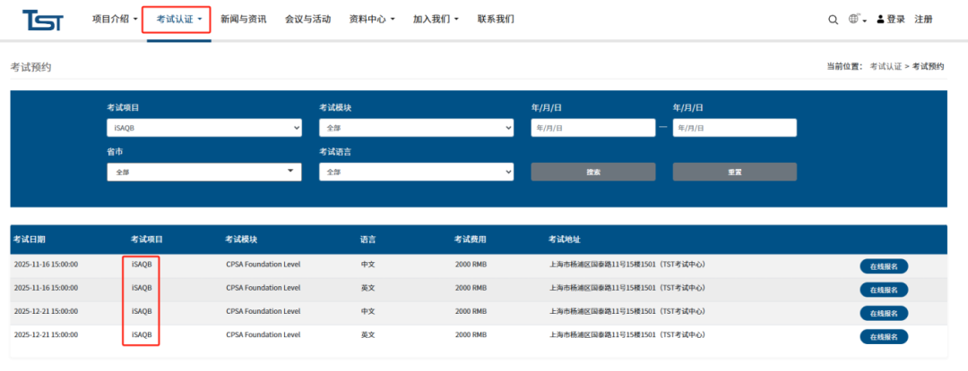 如想预约报名iSAQB®考试,请点击以下链接进行报名: