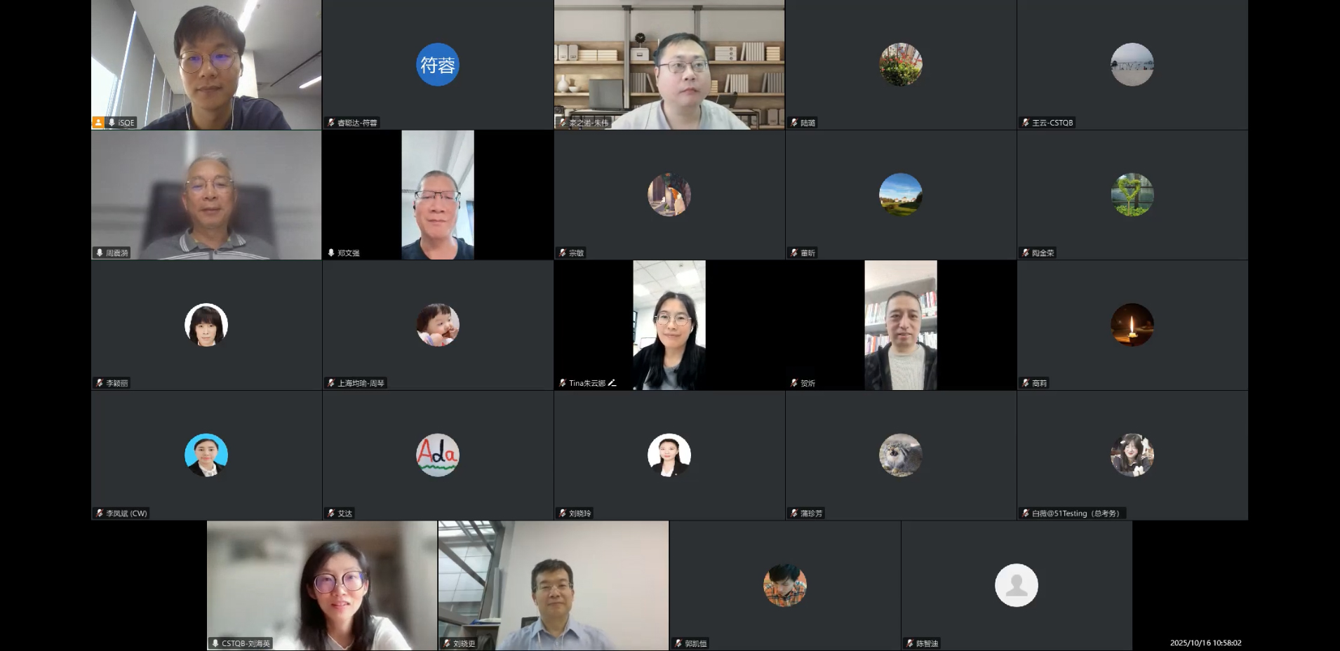 2025年10月16日,中国软件测试认证委员会(CSTQB®)主办的2025机构&讲师线上交流会圆满收官。本次会议以“信息共享、问题共解”为核心,来自全国各地的授权培训机构代表、资深讲师在线齐聚,围绕ISTQB®认证体系升级、专业书籍发布及考务政策优化等核心议题展开深度交流;其中,在培训相关问题解答环节,特别邀请到资深专家郑文强老师参与,与讲师们进行经验交流并提供专业解答,共同为推动软件测试人才培养体系的完善与升级注入新动能。