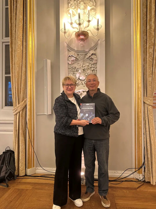 会议期间,ISTQB®主席Klaudia Dussa-Zieger与出席本次大会的中国代表——CSTQB®及TMMiCN、CREB核心发起人兼副理事长,同时也是《汽车软件测试基础》译者之一的周震漪先生合影留念。合影中,Klaudia Dussa-Zieger 主席既高度认可《汽车软件测试基础》对汽车软件测试知识普及的推动作用,也肯定了 CSTQB® 在国际标准本土化落地与行业能力建设中的努力及成果,称赞中国分会为全球软件测试标准实践贡献重要力量。