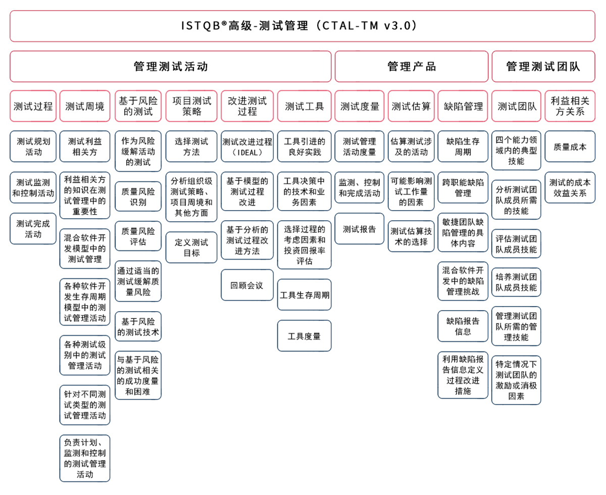 高级测试管理认证考试的内容将基于本教学大纲的内容。考题的答案可能会涉及本教学大纲的多个章节知识点。考试的范围覆盖本教学大纲所有的章节,除了引 言、附录和参考外。标准和书籍作为参考资料已包含在第5章中,其内容不直接作为考试内容,但本教学大纲中从这些参考资料总结出的内容在考试范围内。