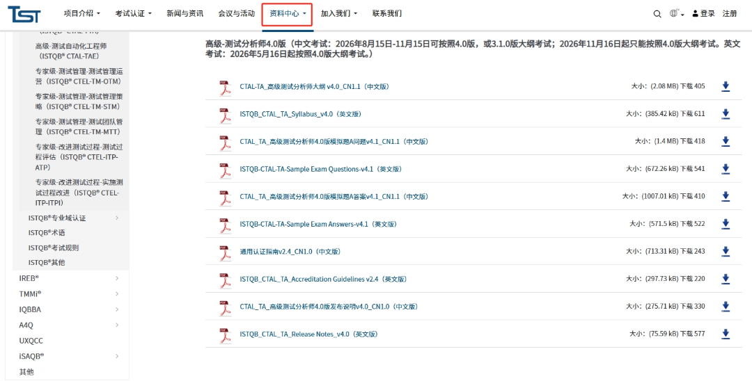 ISTQB®CTAL-TA资料下载链接