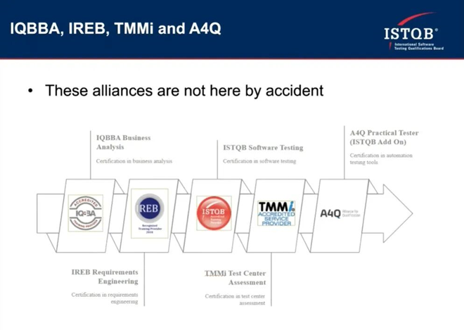 本次大会介绍了IQBBA(国际业务分析认证委员会)、IREB®(国际需求工程委员会)、TMMi®基金会与A4Q(Alliance 4 Qualification)的联盟协作格局。四大组织优势互补,协同支撑全球软件行业标准化、人才认证与能力提升。