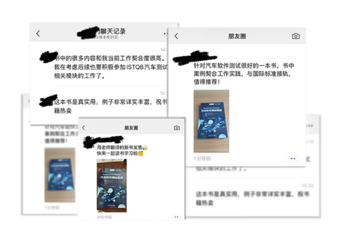 除了行业大咖的推荐,不少收到并阅读本书的读者也给出了积极反馈。有读者表示:“书中的很多内容和我当时工作契合度很高,读完后我正考虑后续积极参与 ISTQB®汽车测试相关模块的学习工作。”还有读者评价:“本书实用性很强,案例详实丰富,能切实解决工作中的实际问题,祝书籍热卖。”